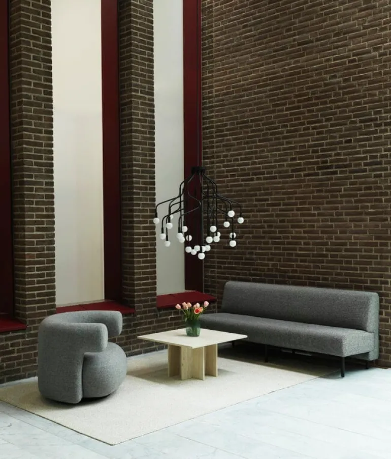 Burra-fåtöljen designades av Simon Legald och fick sitt namn från den älskade italienska burrata-osten. Dess runda form påminner om en gigantisk burrataboll, och även i sin mjukhet är Burra lik sin italienska inspiration. Den lågprofilerade designen garanterar att fåtöljen ger en känsla av lätthet snarare än tyngd. Fåtöljen kan på egen hand enkelt hamna i strålkastarljuset med sin uttrycksfulla design, men flera Burras passar även ihop i grupp.