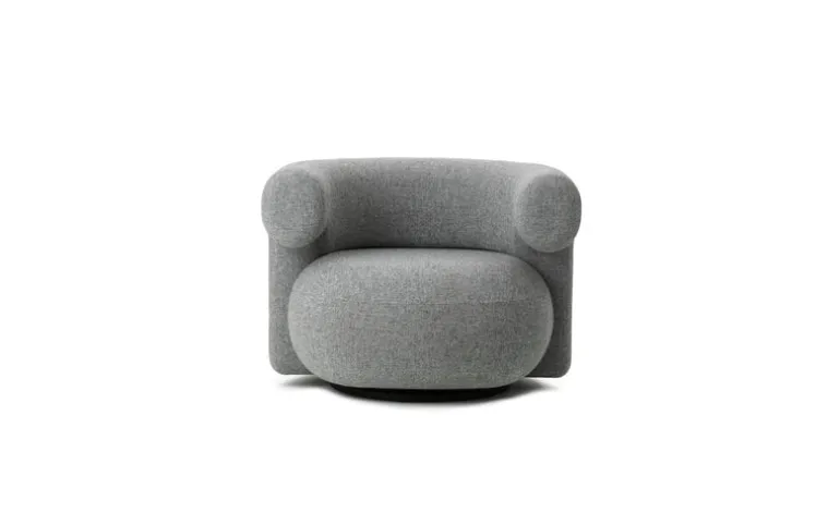 Normann Copenhagens Burra-fåtölj ger en härlig rundhet och omslutande komfort till alla utrymmen där avkoppling är viktigt. Denna skulpturala fåtölj kombinerar en rund sits och böjda armstöd, som vaggar den som sitter i en mild omfamning. Den här Burra-stolen, klädd i en ullblandning, kommer med en snurrfunktion – vilket gör det enkelt att vrida sig mot en samtalspartner eller en fin utsikt.