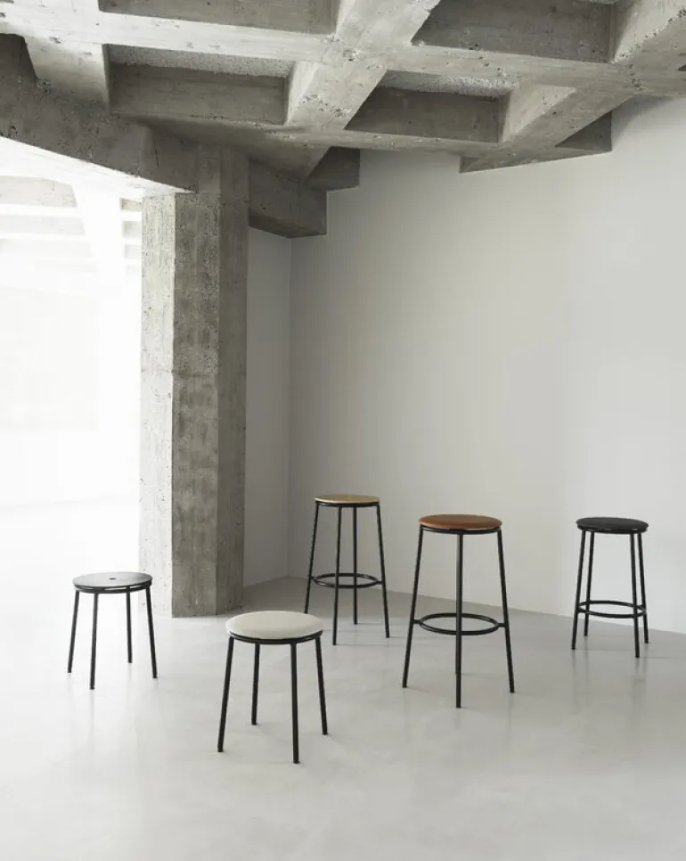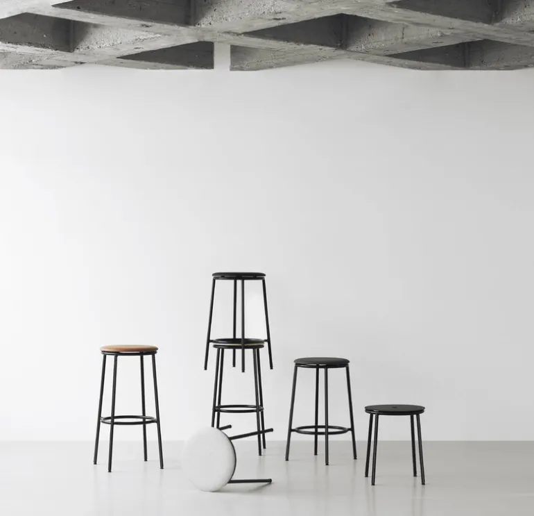 Normann Copenhagens Circa är en minimalistisk och tidlös pall bestående av en smal ram av stålrör och ett svartlackerat sits i ekfanér. Pallen, som är designad av Simon Legald, har fått sitt namn från de runda elementen: den cirkulära formen upprepas både i sitsen och i hålet i mitten av sitsen, vilket gör det enkelt att bära pallen från en plats till en annan. Den klassiska men samtida pallen Circa passar bra bredvid köksön, runt matbordet eller som extra sittplatser för gäster.