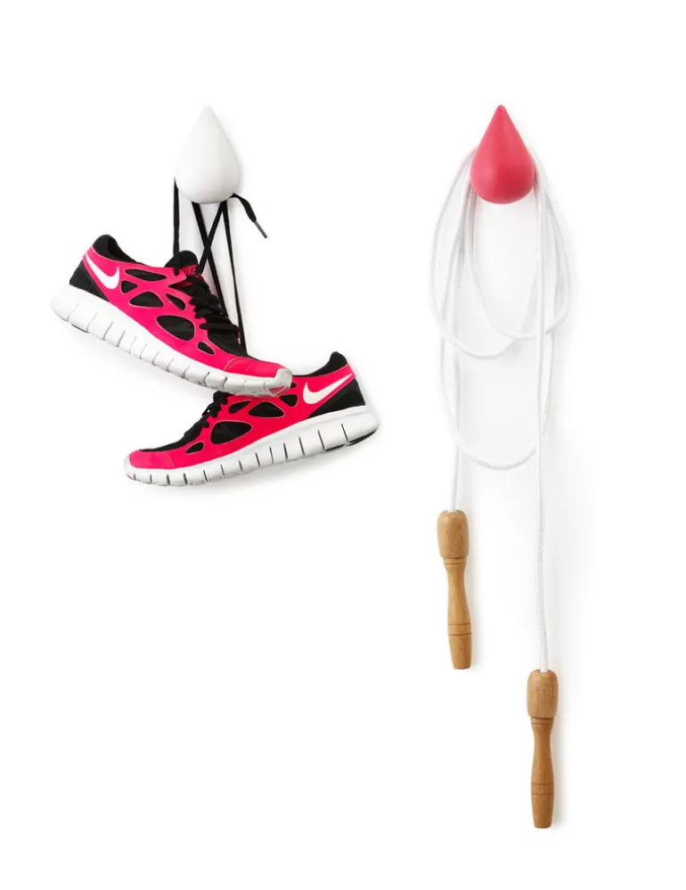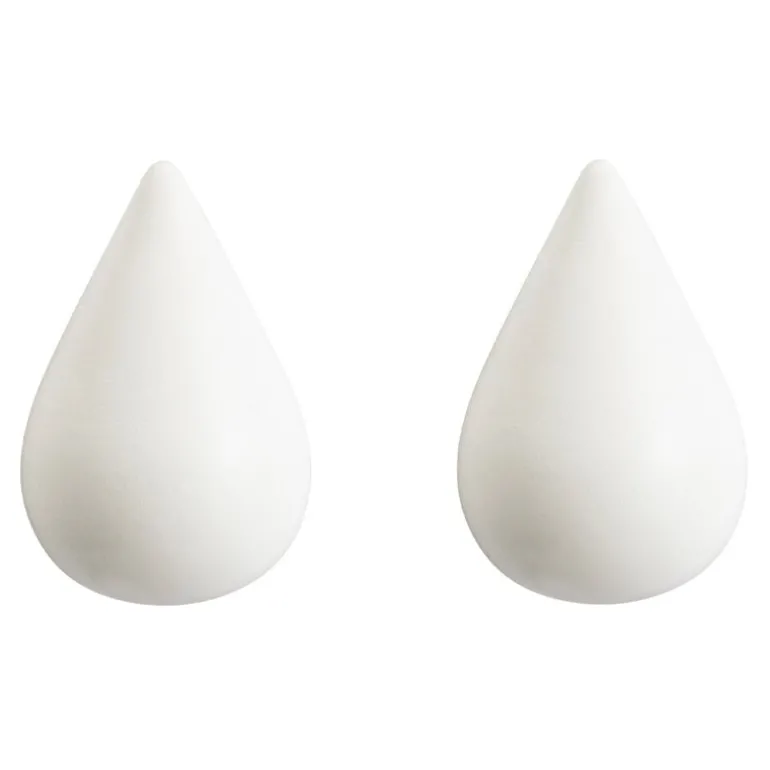 Dropit-krokarna är droppformade väggkrokar i trä som designats av Asshoff & Brogård för Normann Copenhagen. Dropit har ett starkt visuellt uttryck och en utsökt stil, det är som att ha ett konstverk på väggen. Sätt upp en droppe på väggen eller skapa ett mönster med flera krokar – Dropit passar in i alla typer av rum. Dropit finns i två olika storlekar och en låda innehåller två stycken krokar.