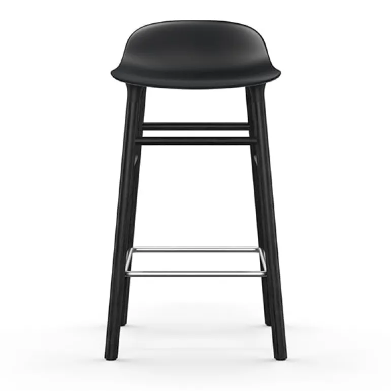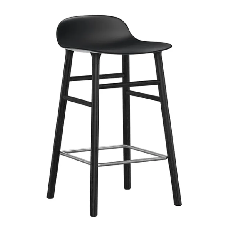 Barstolen Form från Normann Copenhagen har samma stilrena linjer och innovativa design som matstolarna i samma kollektion. De runda benen är fästa vid sitsen med ett koppsystem, vilket ger barstolen dess unika och moderna utseende. Den rundade plastsitsen är enkel att hålla ren, och fotstödet ger extra komfort. Barstolen Form är ett utmärkt komplement till alla kök eller barområden.