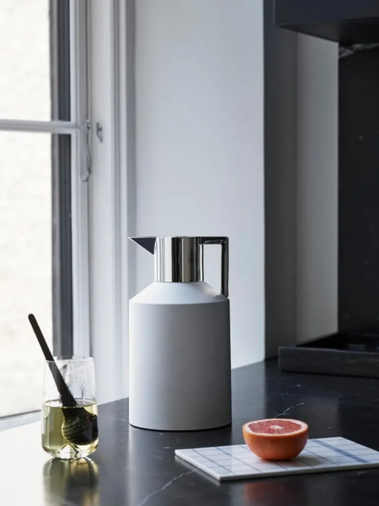 Geo termoskannan, designad för Normann Copenhagen av Nicholai Wiig Hansen, karaktäriseras av skarpa kanter, geometriska former och stiliga färgkombinationer. Den retroinspirerade designen och exceptionella funktionaliteten gör Geo till det perfekta tillskottet i bordsuppsättningar både hemma och utomhus. Oavsett om du ska campa eller på picknick i parken – eller bara avnjuta en varm kopp kaffe på balkongen – Geo håller varma drycker varma och kalla drycker kalla medan den även ser stilig ut.