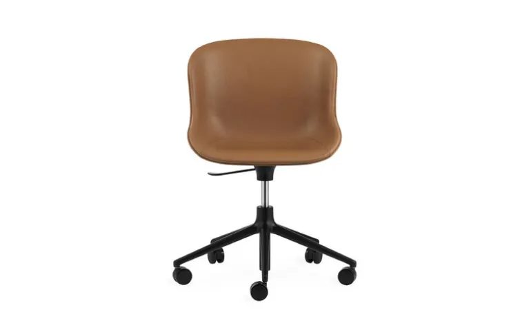 Normann Copenhagen Hyg stol med 5 hjul, svängbar, svart – brandy läder Ultra