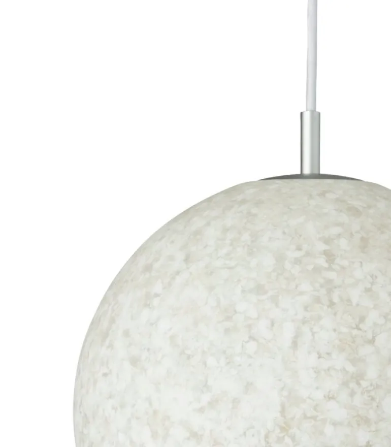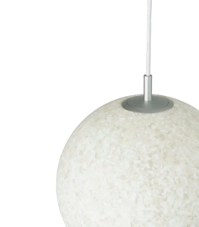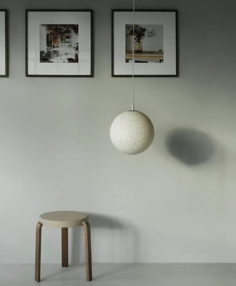 Pendellampan Pix från Normann Copenhagen är en modern version av den klassiska, klotformade hänglampan. Pix-lampans runda skärm är tillverkad av återvunnen plast i olika nyanser av vitt – vilket ger varje lampa en egen och unik färgsammansättning. När lampan är släckt tycks skärmen vara helt opak, medan när den tänds blir den halvt genomskinlig och avger ett vackert sken som avslöjar ytskiktets korniga struktur.