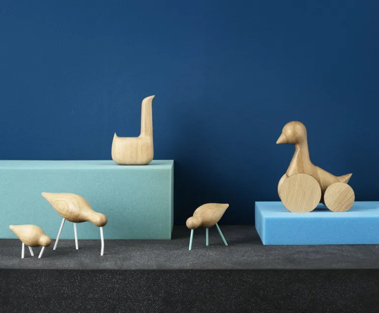 | Normann Copenhagens Shorebirds är sympatiska träskulpturer som föreställer vadarfåglar som är kända för sin långa näbb och sina långa ben. Isländska designern Sigurjón Pálsson har fångat essensen av dessa fåglar med simpla silhuetter, gjorda av massiv ek. Shorebird är ett vackert tillskott på sidobord och i bokhyllor, både ensamma och i flock. |