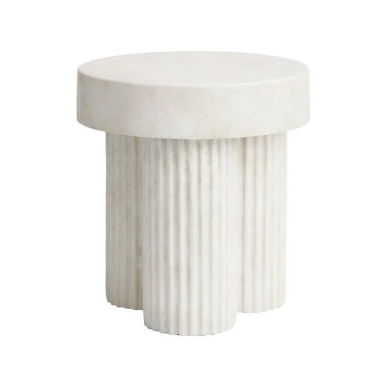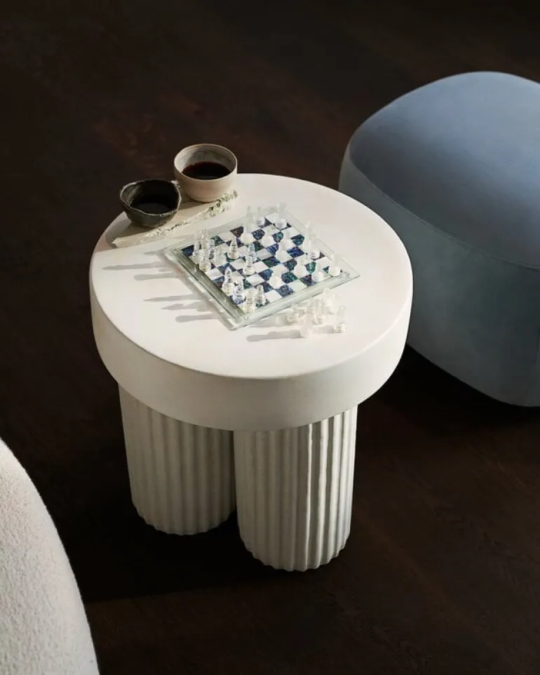 NORR11:s sidobord Gear är ett skulpterat bord i betong med en design inspirerad av den brutalistiska arkitekturen från mitten av 1900-talet. Sidobordet Gear består av en robust, rund bordsskiva som bärs upp av tre cylindriska ben, alltsammans gjutet i ett enda stycke. Betongen ger bordet en livfull, taktil textur som förstärks av de räfflade inslagen på benen.