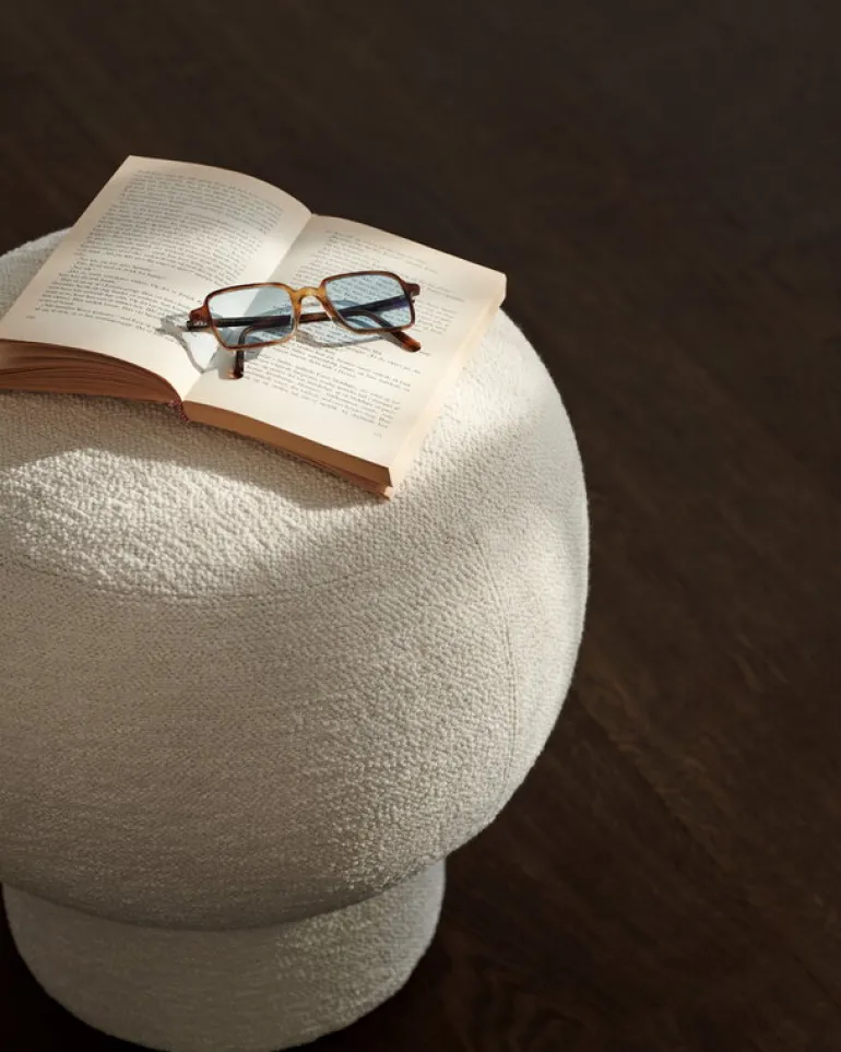 Liège-puffen från NORR11 har fått sitt namn från dess karakteristiska form som imiterar en champagnekork. Designad av Kristian Sofus Hansen och Tommy Hyldahl 2021, fungerar Liège-puffen lika bra som en liten extra sittplats eller en fotpall bredvid en soffa eller fåtölj. Puffen är konstruerad av plywood och skum och klädd i ett livligt texturerat bouclétyg. Liège-puffen ser förtjusande ut i alla inredningar, antingen individuellt eller i grupper.