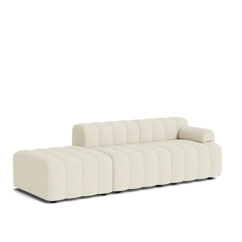 Den modulära soffan Studio 1 från Norr11 sveper dig av fötterna med sitt unikt slanka och lyxiga utseende, som bär på häftiga referenser till designepoken på 1970-talet som man aldrig glömmer. Men du kommer inte att ha bråttom att resa dig upp igen, eftersom den plyschiga soffan inte bara är visuellt tilltalande utan också en fröjd att luta sig tillbaka i. En mjuk och smidig boucléklädsel fulländar stämningen och ger rummet en taktil touch.