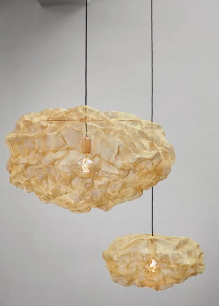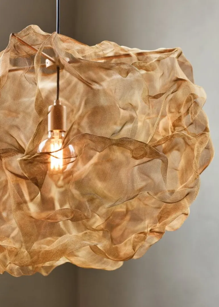 Northerns pendellampa Heat ger ett fängslande intryck, då skärmen är framställd av ett finmaskigt nät i mässing som förvandlas till ett glödande moln av eld när den är tänd. När lampan är släckt har den en mycket mer dämpad framtoning och påminner då om ett moln som lätt och mjukt svävar i luften.