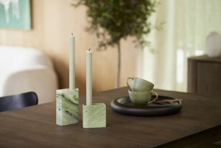 Den naturliga grovheten avspeglas också i materialet som används: genom att Monolith är tillverkad i marmor varierar mönstret, färgen och ådringen för varje ljushållare. Detta är kännetecknande för naturmaterial och ger bara ljusstaken mer personlighet och en än mer unik look. Den eleganta ljushållaren Monolith drar blickarna till sig på egen hand, men tar sig även vacker ut i grupp med flera ljusstakar som har olika mönster, färger och storlekar.