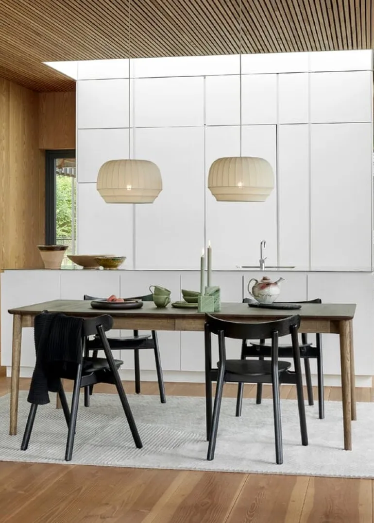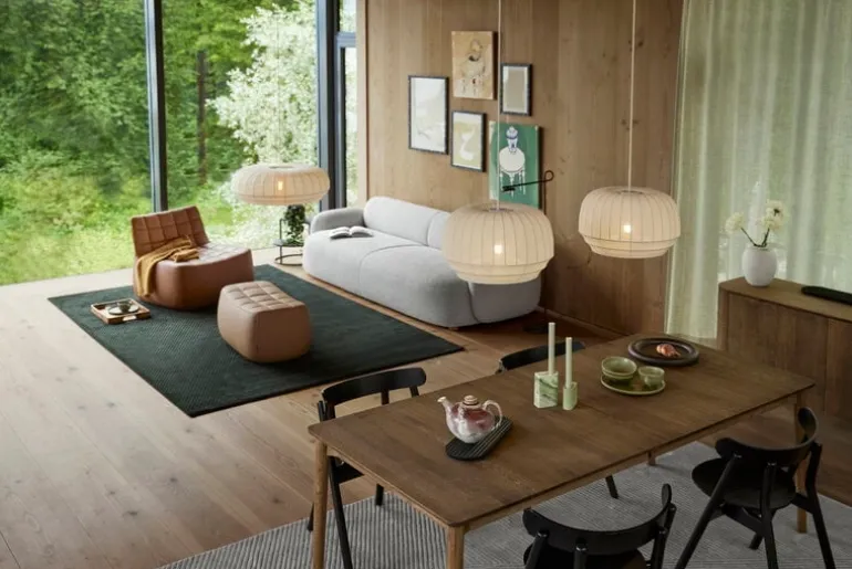 Pendellampan Tradition från Northern är en härligt modern tolkning av en traditionell, handgjord lampa av formgivarduon Morten & Jonas. Skärmen till Tradition-lampan är tillverkad av vävt polyestertyg som omsorgsfullt har spänts över en stålram. Lampans strömkabel finns dold inuti ett silkessnöre, som fulländar det vackra utförandet. Den lätt genomskinliga skärmen släpper igenom ett mjukt ljussken, som skapar en stilla, gemytlig atmosfär i köket, vardagsrummet eller sovrummet, antingen i ensamt majestät eller i grupp om flera Tradition-lampor.