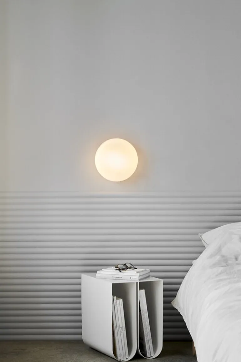 NUAD:s vägglampa Opa sprider ett mjukt sken i både hem och offentliga miljöer på ett enkelt och elegant sätt. Den minimalistiska och rogivande ljuskällan består av en vit, munblåst skiva i opalglas och en sladd i svart textil som skapar kontrast. Den allsidiga lampan kan användas individuellt, i par eller i grupp om flera lysande lampor. Du kan antingen montera Opa på väggen eller i taket.