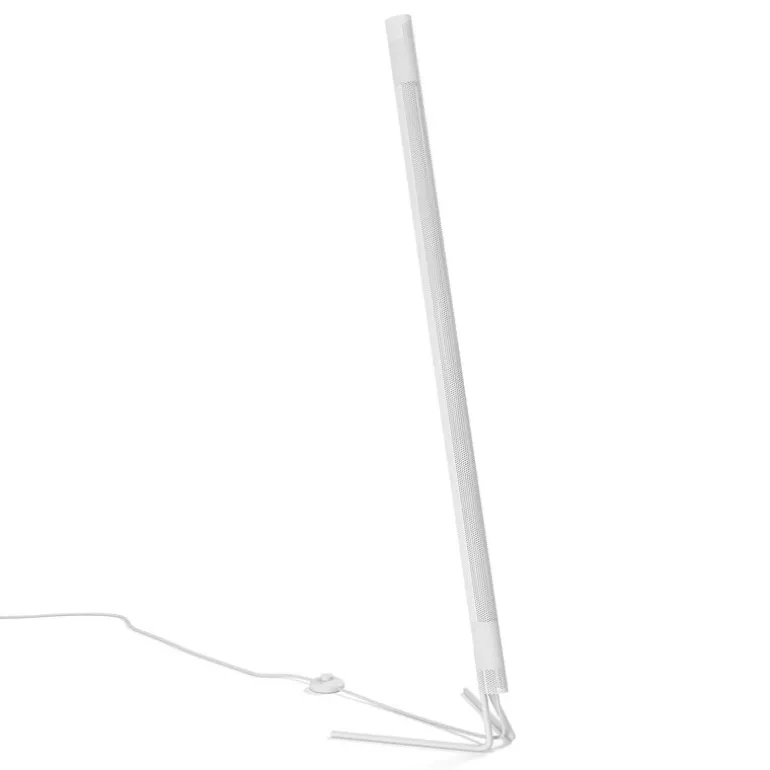 Golvlampan Radent från NUAD är tillverkad av perforerat stål och aluminium. Den diskreta armaturen erbjuder direkt bakåtstrålande ljus, men tack vare dess konstruktion filtreras ljuset också genom det böjda metallnätet. Enkel och återhållsam, Radent är idealisk för moderna kontorsutrymmen såväl som vardagsrumshörn. Den industriella lampan är också lätt att föreställa sig i hotell, restauranger och barer.