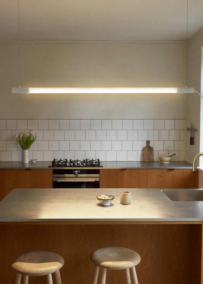 Radent pendellampa, från NUAD, är gjord av perforerat stål och aluminium. Den enkla armaturen ger ett direkt ljus nedåt, men tack vare dess konstruktion filtreras ljuset även uppåt, genom det böjda metallnätet. Radents enkla men självklara uttryck passar utmärkt på det moderna kontoret, i privata hem ovanför matbordet eller över köksön. Den industriella lampan är också enkel att se framför sig i hotell, restauranger eller barer.