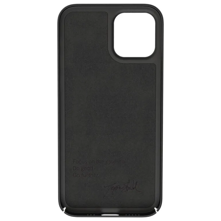 Trots att Thin Case endast är 1 mm tjockt, skyddar det din telefon från bucklor och skador tack vare dess hållbara material – polykarbonat – och mikrofiberfoder som erbjuder extra skydd mot repor. Den matta finishen på silikonbeläggningen känns trevlig att röra vid och låter telefonen glida smidigt in i fickan. Det svarta telefonfodralet fungerar med MagSafe-laddning och andra trådlösa laddare.