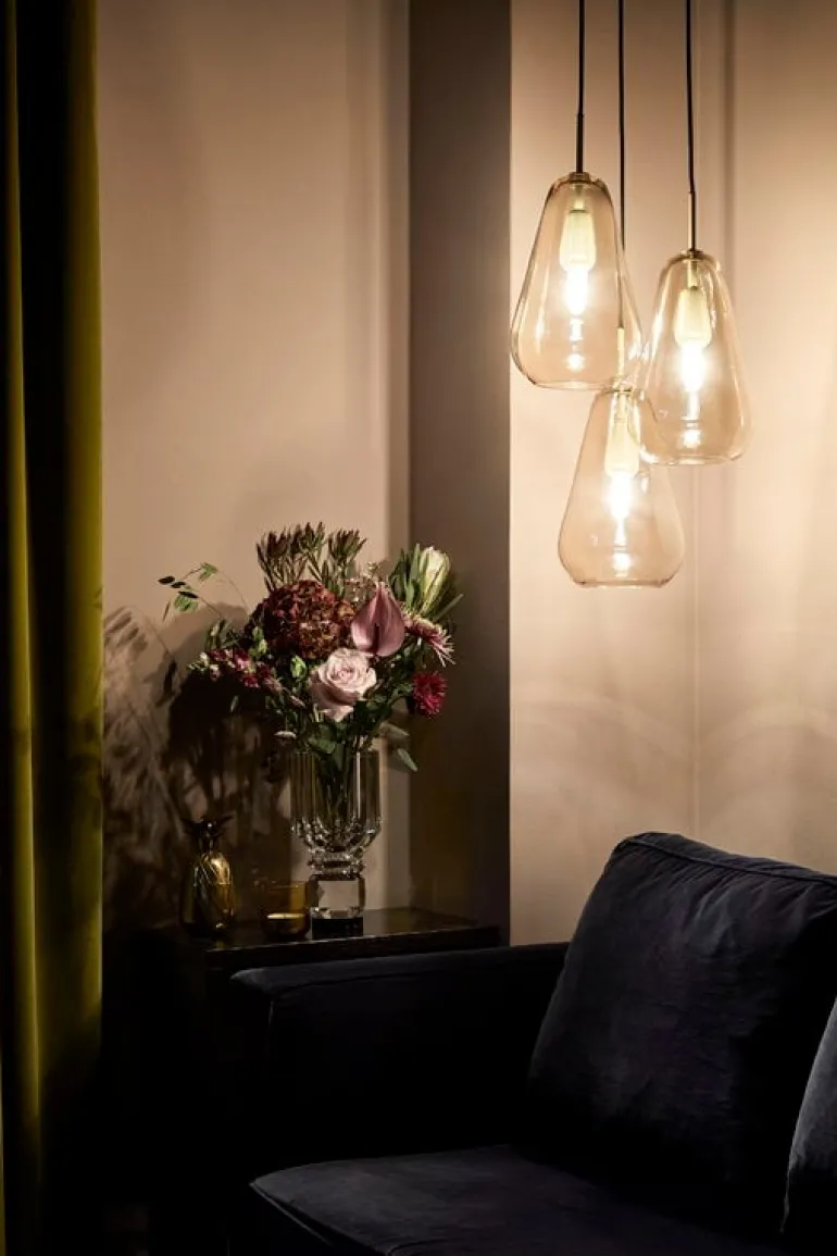 Pendellampan Anoli 3 från det danska lampmärket Nuura består av tre droppformade glasskärmar, handmålade i en diskret, gyllene färg. Nuuras Anoli-kollektion hämtar inspiration från tysta regndroppar som reflekterar de unika tonerna i nordiskt ljus. Anoli-pendlarna är tillverkade i metall och munblåst glas, och fulländas med guldfärgade detaljer. Anoli-lamporna har formgivits av den prisbelönta danska ljusdesignern Sofie Refer och ger en djärv och sofistikerad touch av modern skandinavisk design till både hem och offentliga miljöer.