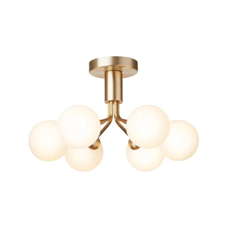 Taklampan Apiales 6 drar blickarna till sig i till exempel i hallen, över matbordet eller som mittpunkt i vardagsrummet – dess måttliga höjd gör armaturen perfekt för utrymmen med lågt i tak där en lågt hängande ljuskrona inte skulle passa.