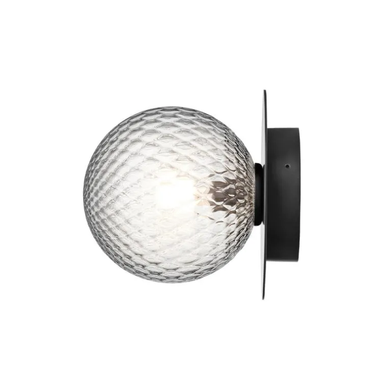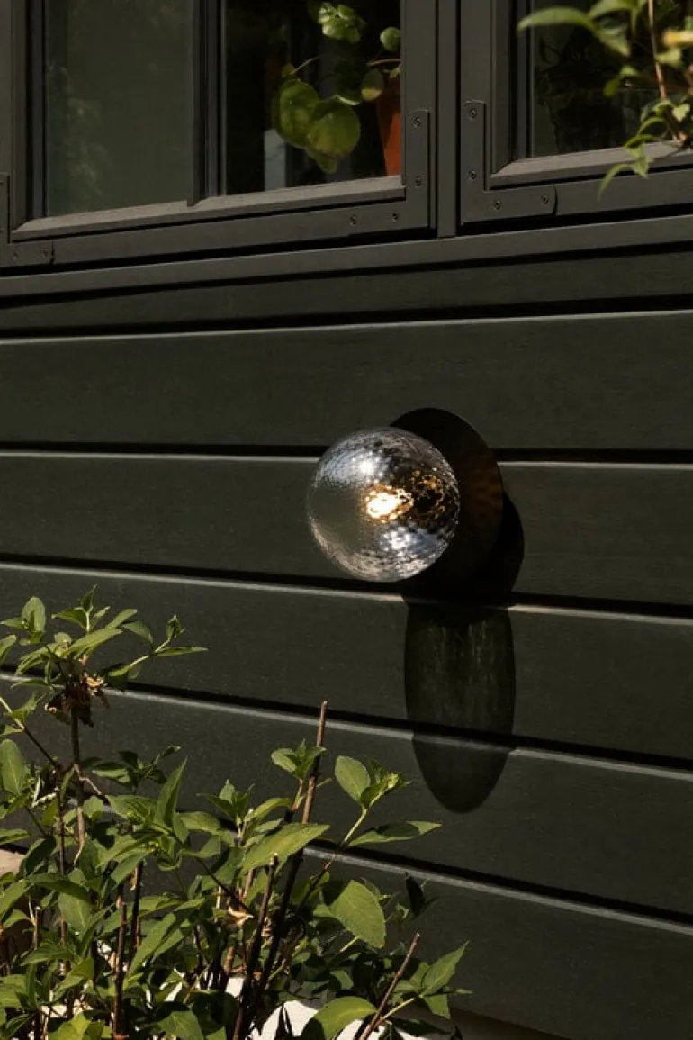 Nuuras Liila 1 Outdoor lampa är en ljuvligt mångsidig utomhusarmatur som kan monteras på antingen ytterväggen eller taket. Den skapades av den prisbelönte danska lampdesignern Sofie Refer. Liila-lampan har en rund, munblåst glasglob och en robust, men graciös, metallkropp. Den genomskinliga textilskärmen kastar ett vackert mönster runt lampan.