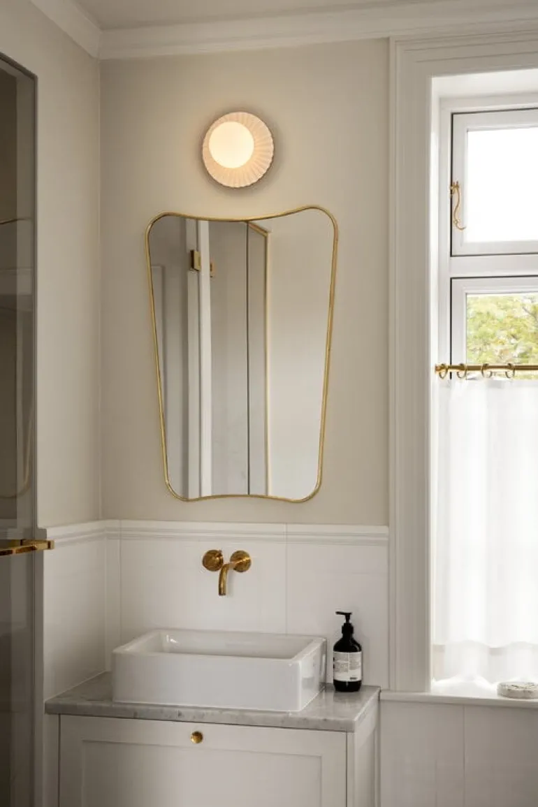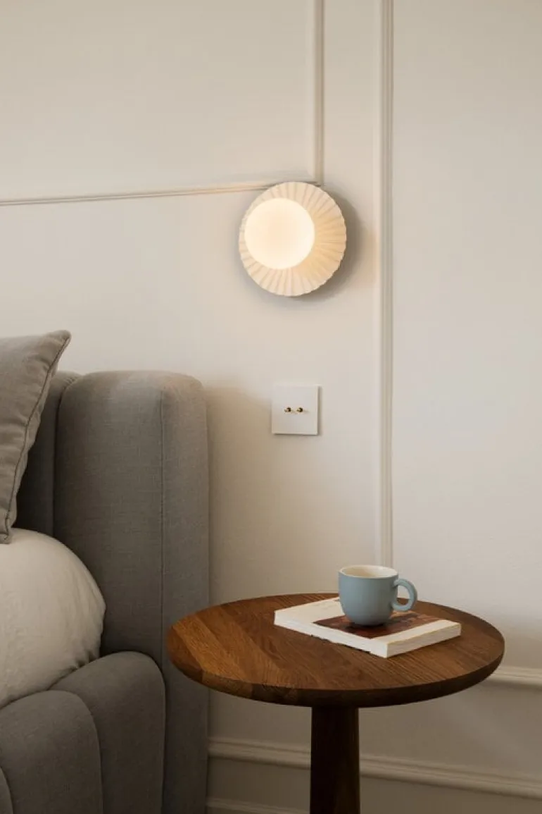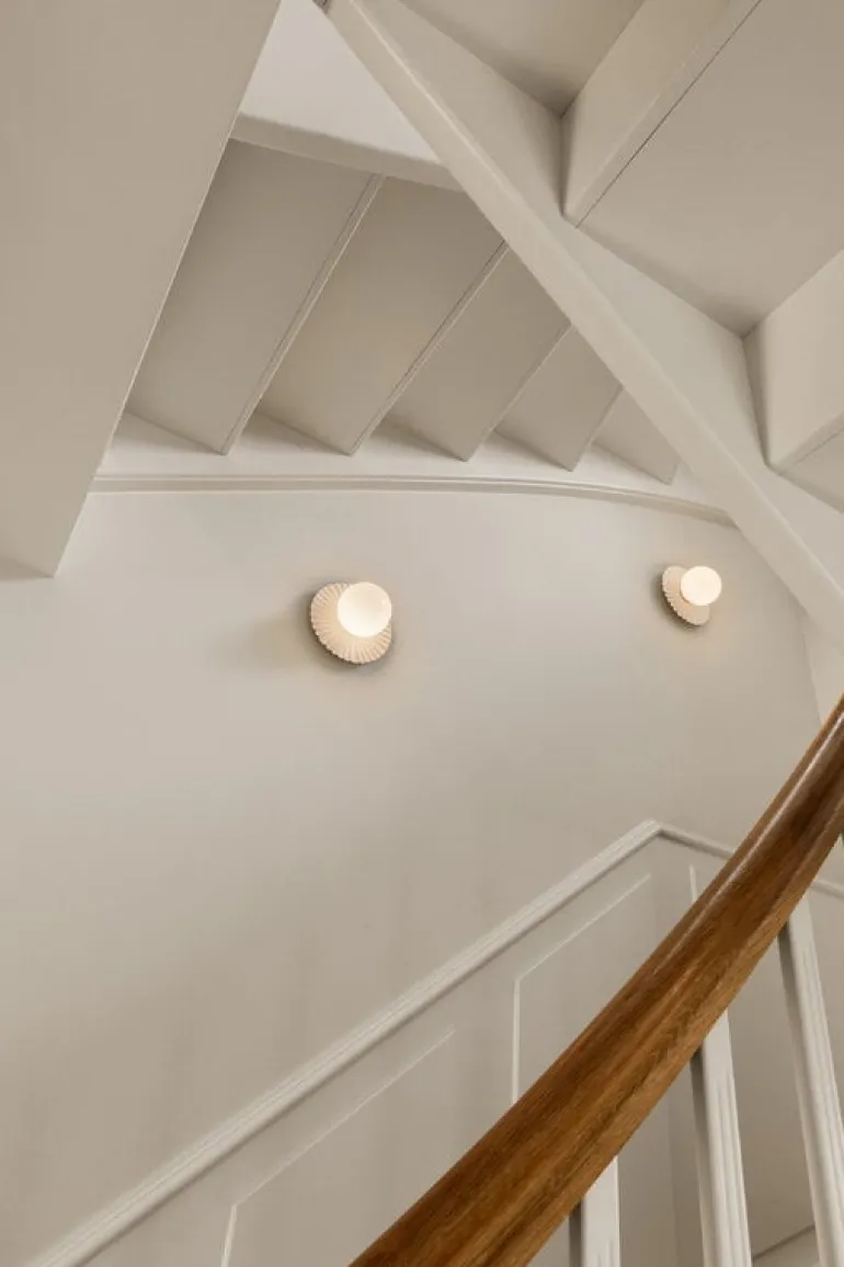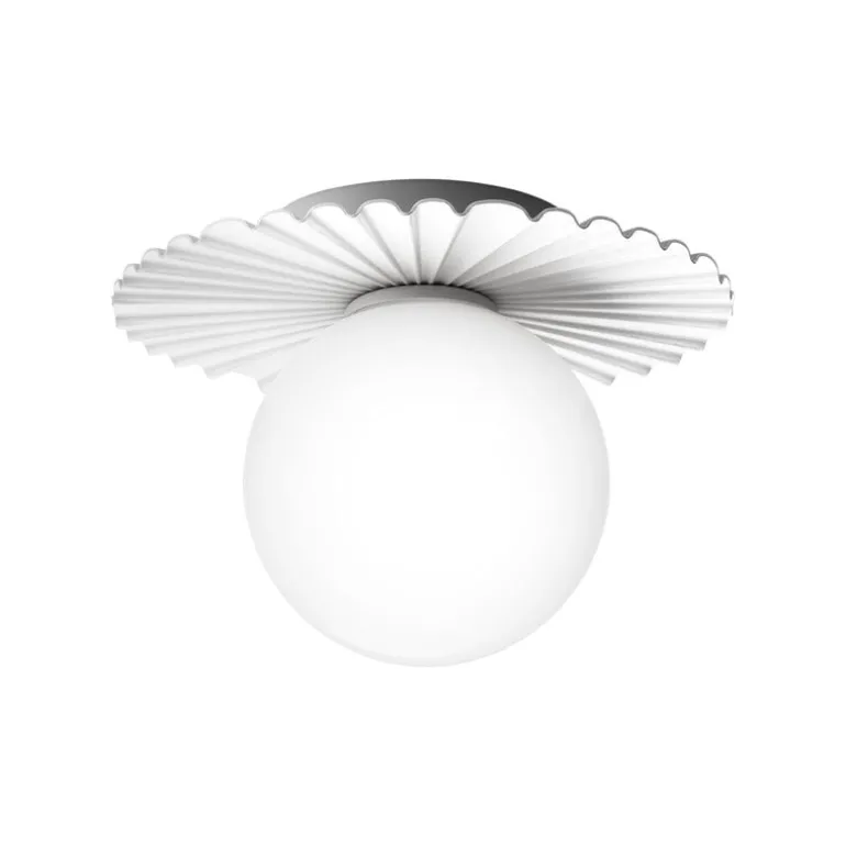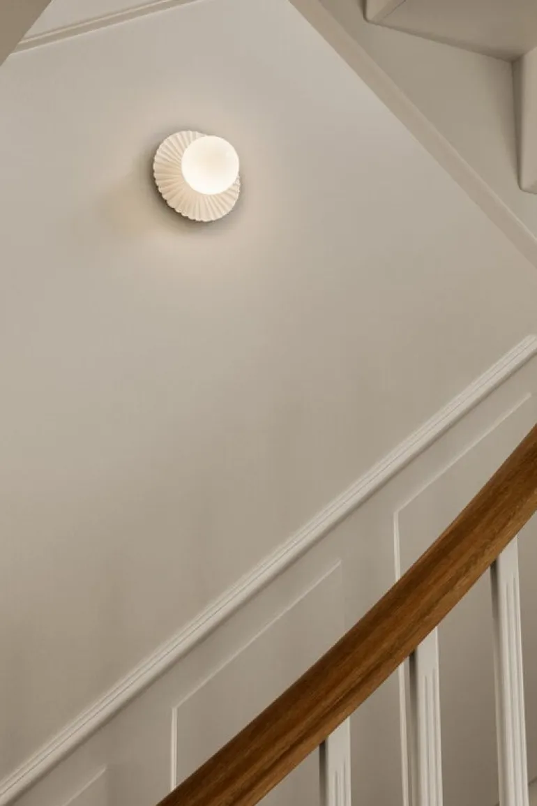 Nuuras lampa Liila Muuse är en härligt mångsidig ljuskälla som antingen kan monteras på väggen eller i taket. Liila-lamporna, som har skapats av den prisbelönta danska lampdesignern Sofie Refer, består av runda, munblåsta glasglober och robusta, men på samma gång graciösa metallstommar. På lampan Liila Muuse omges glasgloben av en underbart asymmetrisk och vågformad bakplatta med referenser till Köpenhamns nöjespark Tivoli, men också till de sirliga takutsmyckningar som finns i vissa historiska byggnader.
