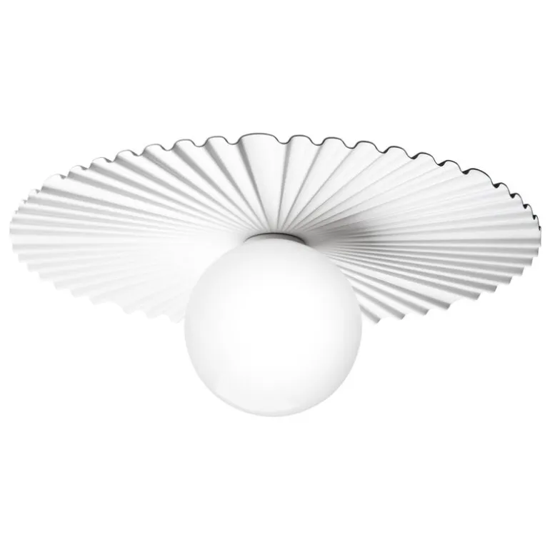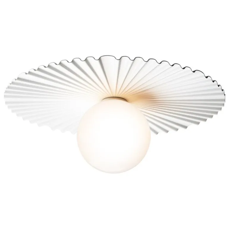 Nuuras lampa Liila Muuse är en härligt mångsidig ljuskälla som antingen kan monteras på väggen eller i taket. Liila-lamporna, som har skapats av den prisbelönta danska lampdesignern Sofie Refer, består av runda, munblåsta glasglober och robusta, men på samma gång graciösa metallstommar. På lampan Liila Muuse omges glasgloben av en underbart asymmetrisk och vågformad bakplatta med referenser till Köpenhamns nöjespark Tivoli, men också till de sirliga takutsmyckningar som finns i vissa historiska byggnader.