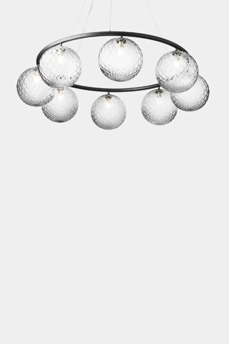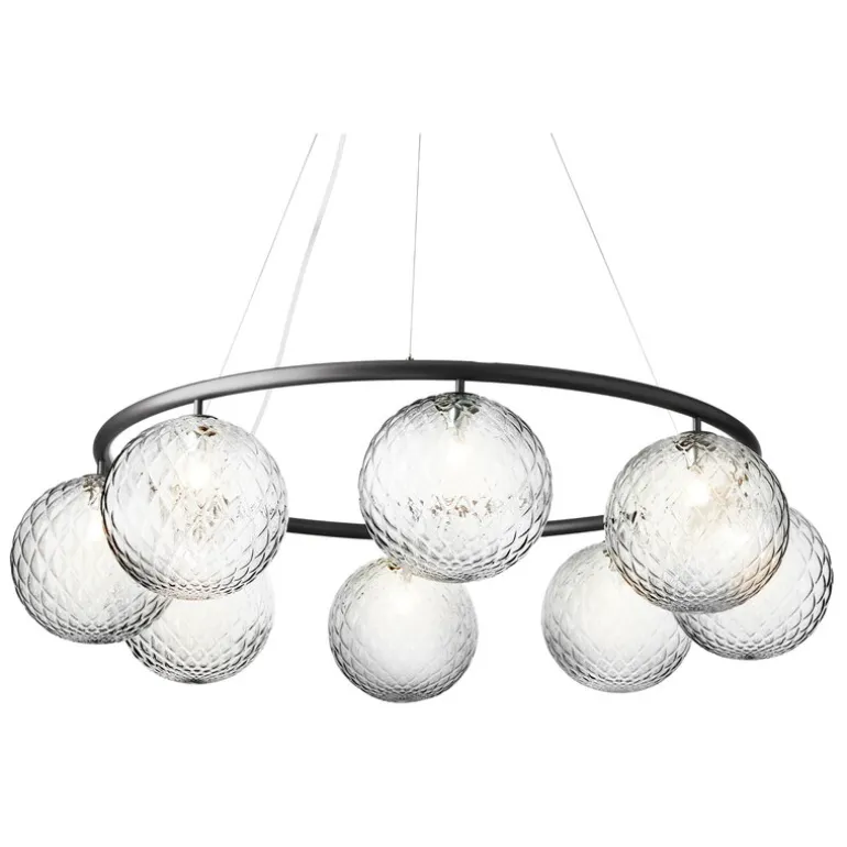 Taklampan Miira 8 Circular från det danska märket Nuura är en fantastisk, modern ljuskrona. Den fångar blicken med vackert formade präglade glaskupor som kastar ett atmosfäriskt ljus, med den eleganta metallringen som ger en genomtänkt kontrast till designen. Miira 8 Circular har en diameter på 100 cm, och dess trådsystem gör att du kan justera höjden mellan 20 och 250 cm.