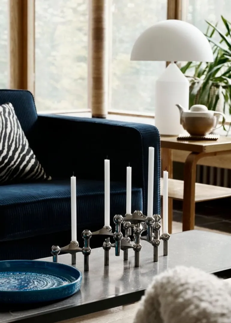 Bordslampan Atollo 235 fascinerar med en vacker diffusor i blåst opalglas från Murano, och den mäter 70 cm i höjd. Den mjuka glansen kompletteras med en separat justerbar belysning inuti bascylindern. Atollo-lampan, designad av Vico Magistretti 1977 för det italienska belysningsföretaget Oluce, har sagts revolutionera vår bild av en klassisk bordslampa. Atollo kombinerar geometriska former som cylinder, kon och halvklot och är extremt raffinerad och djärv på samma gång. Lampan har blivit ikonisk inom modern italiensk design. Atollo vann designpriset Compasso d’Oro 1979 och är en del av de permanenta samlingarna på många stora konstmuseer.