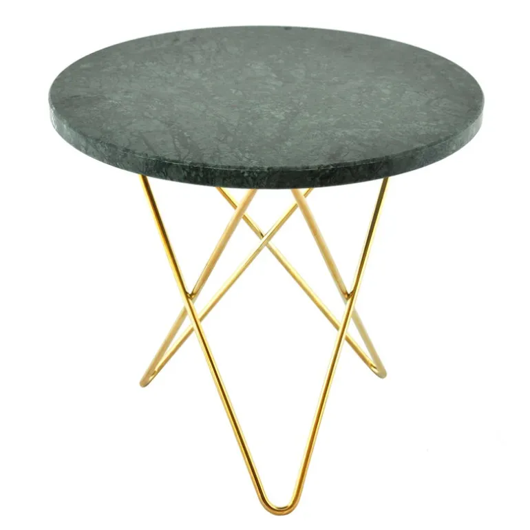 Mini O Table är en mindre variant av bordet O Table från OX Denmarq. Designen är en intressant kombination av två olika material: den mjuka, böjda mässingsramen ger bordet ett lätt utseende, som fulländas av den kraftiga, livfulla bordsskivan i marmor. Utseendet blir ännu mer unikt med tiden, eftersom mässingens glans får en mörkare patina. Dennis Marquart är formgivaren bakom Mini O Table, ett soffbord som passar utmärkt till en mindre soffa eller till en läshörna, eller som extrabord till andra rum i huset.