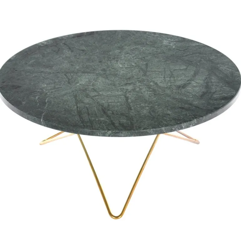 Designen till O-bordet skapades av Dennis Marquart, formgivare och medgrundare till OX Denmarq. Kontrasterna mellan olika material och ytor är viktiga ingredienser i Marquarts design. O:s tidlösa och stilrena utseende är en kombination av lyxig, grön Indio-marmor och den varma glansen från mässingen, som båda kommer att utveckla en ljuvlig patina med tiden. Den runda glasskivan och den smala ramen kommer inte förlora sin starka utstrålning, även om bordet matchas med en större soffgrupp. Det här bordet hamnar garanterat i blickfånget, oavsett var i huset du placerar det.