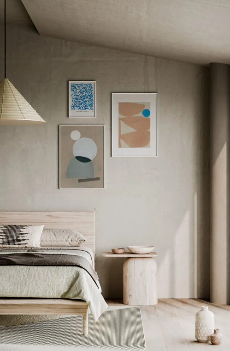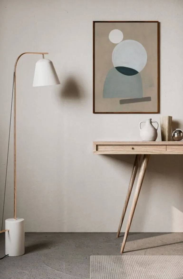 Paper Collectives La Femme 01-poster visar en abstrakt tolkning av den kvinnliga formen. Formerna är poetiska och dynamiska på samma gång då de interagerar med miljöns olika element på ett fascinerande sätt. Postern skapades av den holländska konstnären Mae Studio och är del i en serie handmålade geometriska kompositioner.