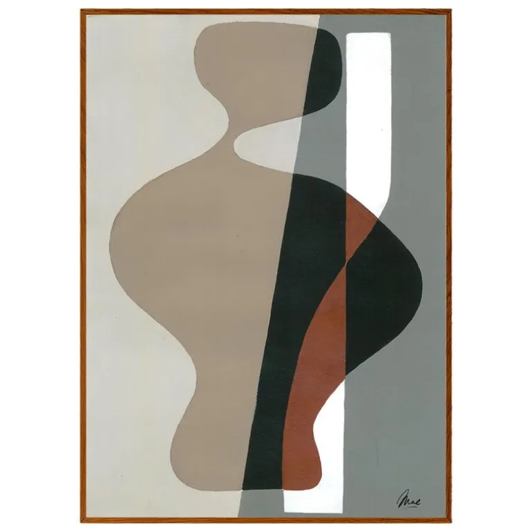 Paper Collectives La Femme 03-poster visar en abstrakt tolkning av den kvinnliga formen. Formerna är poetiska och dynamiska på samma gång då de interagerar med miljöns olika element på ett fascinerande sätt. Postern skapades av den holländska konstnären Mae Studio och är del i en serie handmålade geometriska kompositioner.