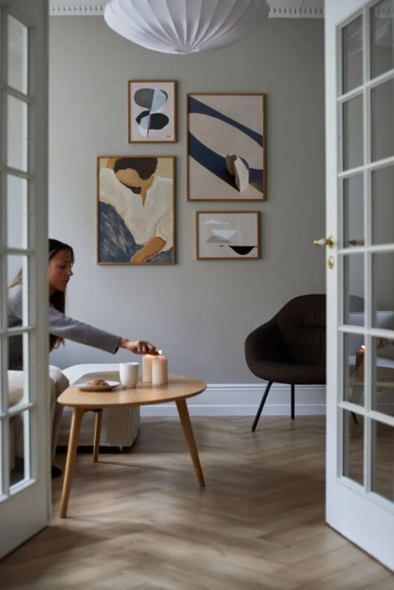 Affischen Music 01, från Paper Collective, avbildar musikens ljud, rytm och harmoni via svarta och vita former på en ljus bakgrund. Konstverkets lugnande färgpalett och abstrakta former lämnar även utrymme för egen tolkning av vad det föreställer.