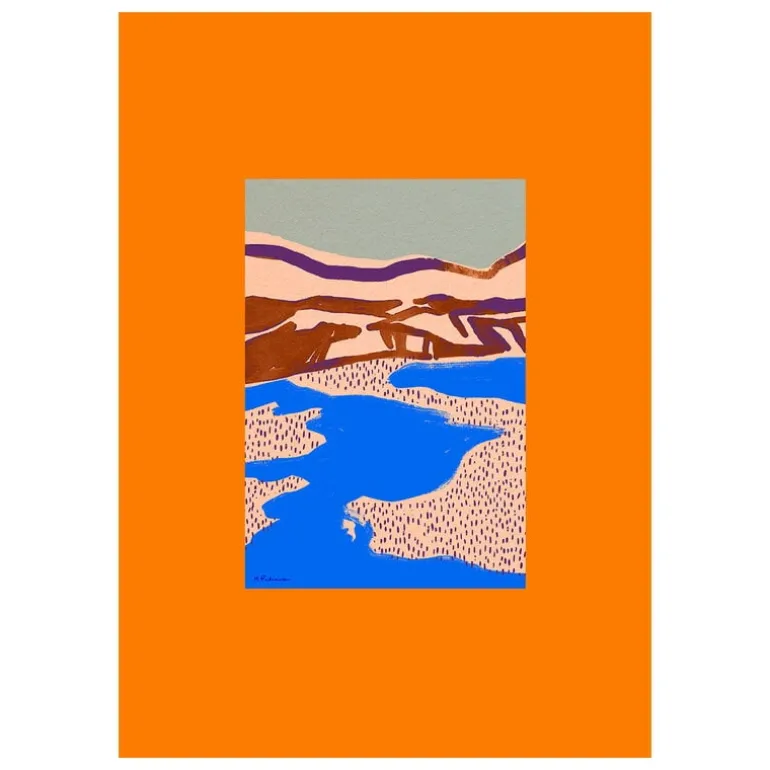 Paper Collectives Orange Landscape-poster visar en stiliserad tolkning av ett levande landskap, fulländad med djärvt och fängslande designspråk och livfulla färger. De sensuella vattenfärgerna tonar ner de kraftiga penseldragen och ger balans åt konstverket. Den charmiga konstpostern har skapats av den polska konstnären och illustratören Magdalena Pankiewicz.
