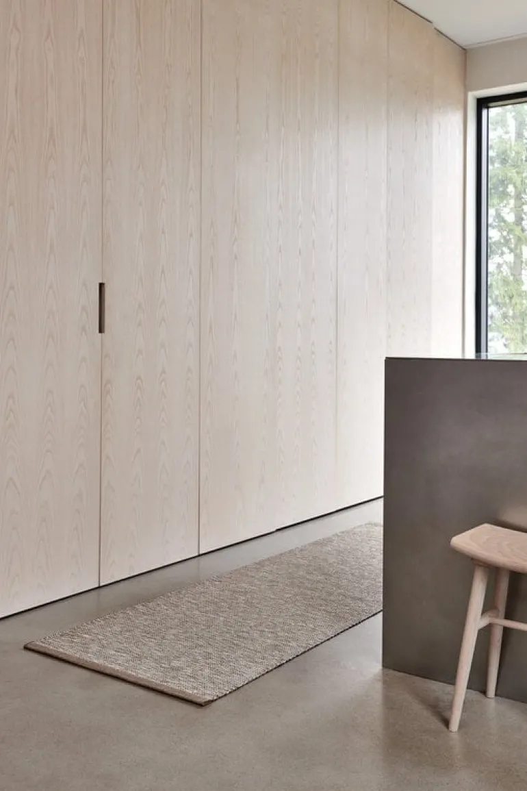 Pappelinas matta Sam fångar den fridfulla känslan av de nordiska landskapen och för den rakt in i ditt hem. Mattan vävs i Sverige med traditionella tekniker och kombinerar slitstarkt, ftalatfritt PVC-garn med en naturlig linvarp. Kombinationen gör mattan både enkel att sköta och elegant. Tack vare sin smala form passar Sam perfekt i hallen, men även i köket eller i barnrummet.