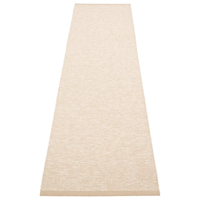 Pappelinas matta Sam fångar den fridfulla känslan av de nordiska landskapen och för den rakt in i ditt hem. Mattan vävs i Sverige med traditionella tekniker och kombinerar slitstarkt, ftalatfritt PVC-garn med en naturlig linvarp. Kombinationen gör mattan både enkel att sköta och elegant. Tack vare sin smala form passar Sam perfekt i hallen, men även i köket eller barnrummet.