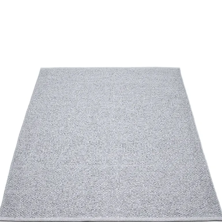 Svea plastmattor från Pappelina är vävda på traditionellt sätt i vävstol i Dalarna, Sverige. Mattorna är tillverkade av ftalatfria PVC-band, är slitstarka och lättskötta, och deras tvåfärgade, metalliska nyanser är perfekta till moderna inredningsstilar. Mattan Svea kan enkelt användas som en matta i hallen, köket eller utomhus. Svea-mattorna har en präglad logo i båda ändarna.