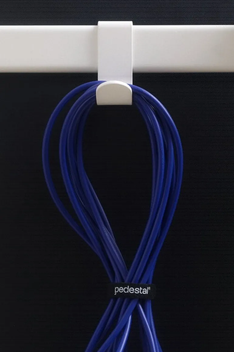 Pedestals krokbeslag hjälper dig att hålla reda på sladdar och kablar i vardagsrummet, så att det alltid är god ordning i din uppiggande nöjesoas! Kroken är tillverkad i aluminium och kan enkelt hakas fast på baksidan av tv-bänken. Krokbeslaget passar till alla tv-bänkar från Pedestal, utom modellerna Linked Tall och Linked Low.
