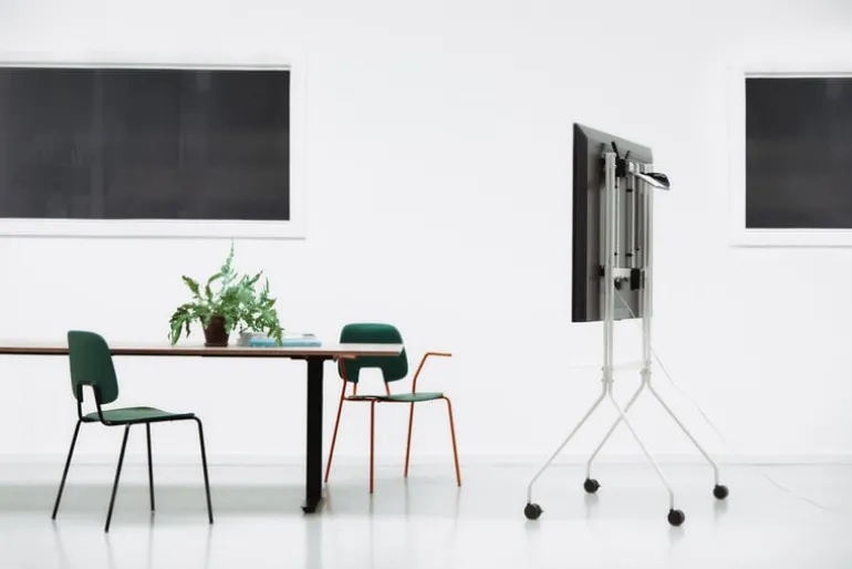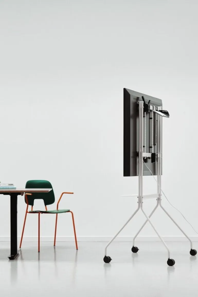 Pedestals tv-bänk Moon Pro är en smäcker och minimalistisk förvaringslösning för tv-skärmar, exempelvis på kontor, i mötesrum eller i utställningsmontrar. Tv-bänken är tillverkad i förkromat stål, medan hjulen lyfter både stilen och funktionaliteten – oavsett om du vill kunna komma närmare tv-skärmen eller tillfälligt kunna flytta undan tv:n till ett annat rum, så erbjuder Moon Pro-bänken enastående flexibilitet.