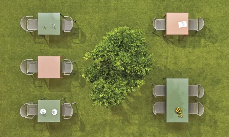 Pedralis Dome 260 stol imponerar med sitt detaljerade utseende. Stolens vackra kurvor och fogarna mellan ryggstödet och benen ser ut som om de var snidade ur trä, men materialet är förvånansvärt nog plast. Materialet gör Dome 260 till den perfekta utomhusstolen: den är väderbeständig, lätt att flytta och samtidigt lätt att rengöra. Trädgårdsstolarna kan vid behov staplas på varandra, vilket gör det enkelt att förvara stolarna vid slutet av terrassäsongen.