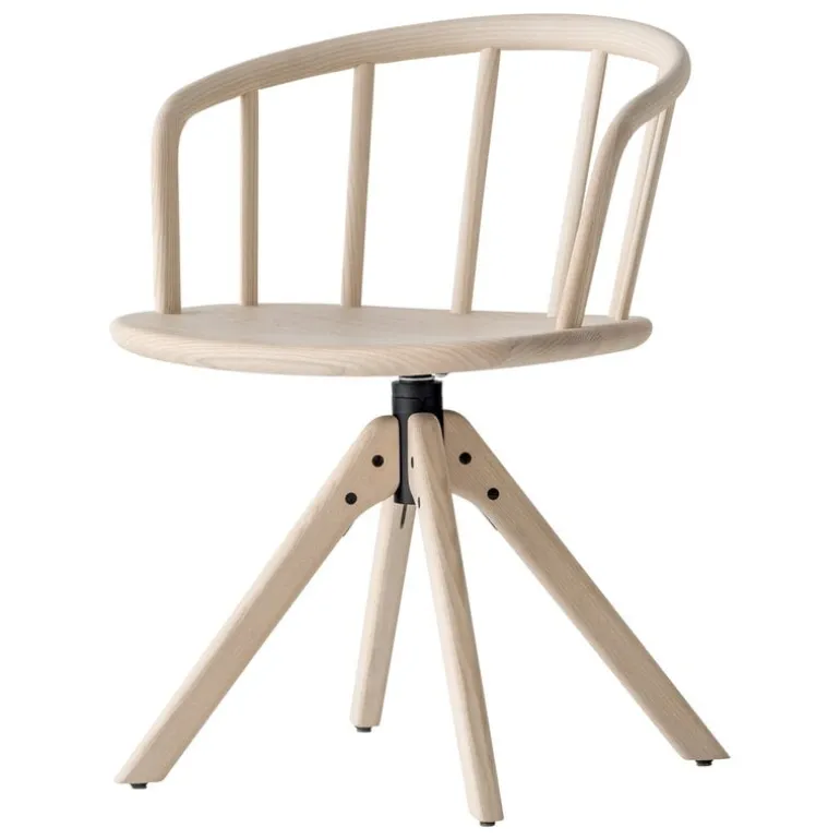 Snurrstolen Nym 2845 från Pedrali för klassiska Windsor-stolens utseende och komfort in i den moderna tiden. Stolens rundade ryggstöd bildas av en obruten båge i ask. Armstödet ger en modern twist till den klassiska stolens design: den elliptiska bågen övergår sömlöst till ett armstöd.