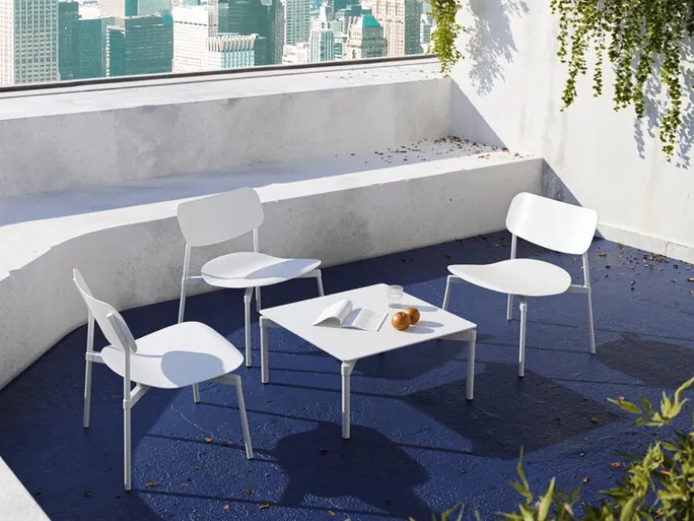 Fåtöljen Fromme från Petite Friture har enkla, strömlinjeformade former och en lätt välvd sits med inbyggda stötdämpare för att ge en maximalt mjuk och följsam upplevelse. Fåtöljen är tillverkad av mattlackerat aluminium och är avsedd att användas både ute och inne – Fromme passar alltså lika bra som utomhusstol i trädgården som fåtölj inomhus.