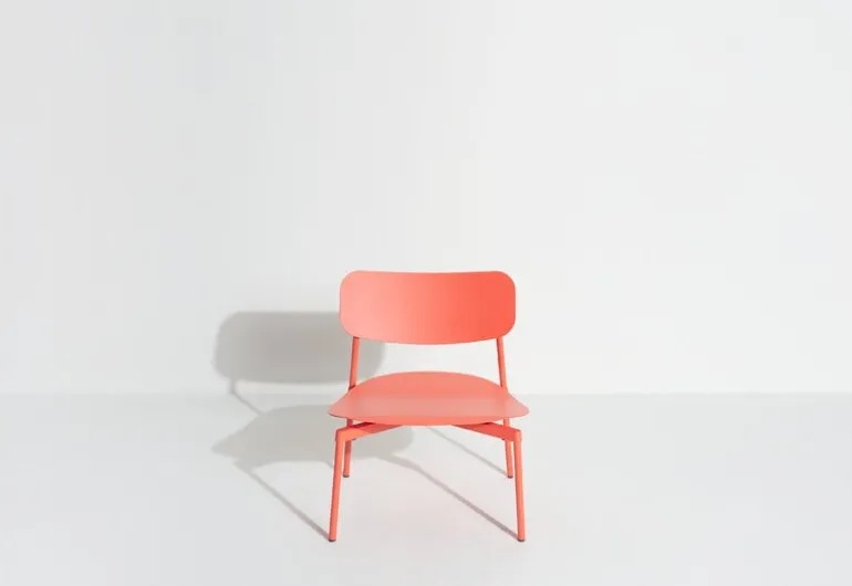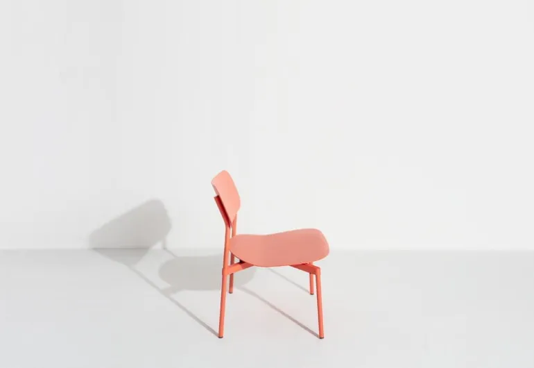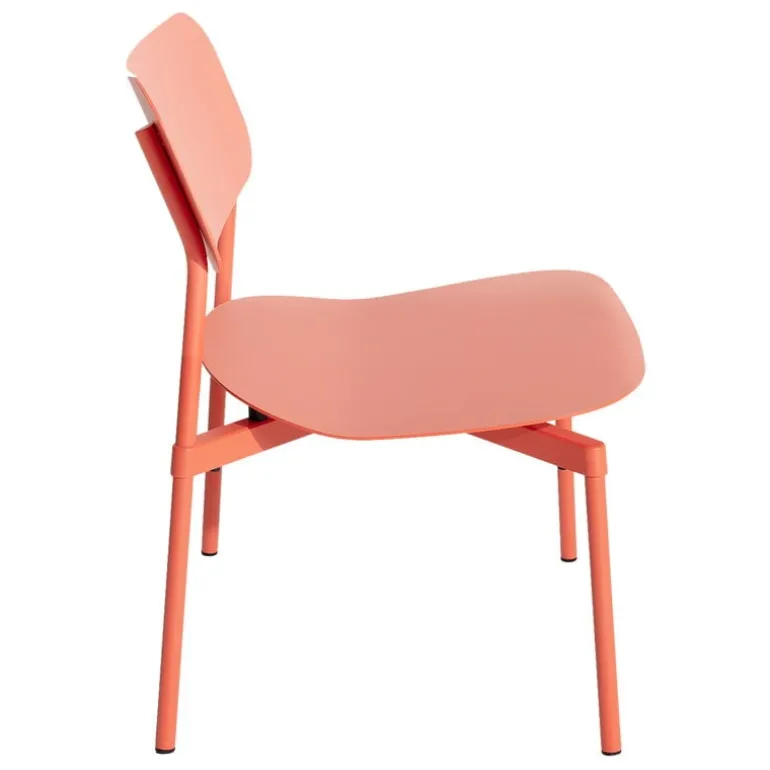 Petite Fritures lounge stol Fromme har enkla, strömlinjeformade former och en lätt böjd sits med integrerade stötdämpare för att maximera en mjuk och flexibel känsla. Fromme lounge stol är tillverkad av mattlackerad aluminium och är designad för både utomhus- och inomhusbruk – den är lika idealisk som en uteplatsstol i trädgården eller som en inomhus lounge stol.