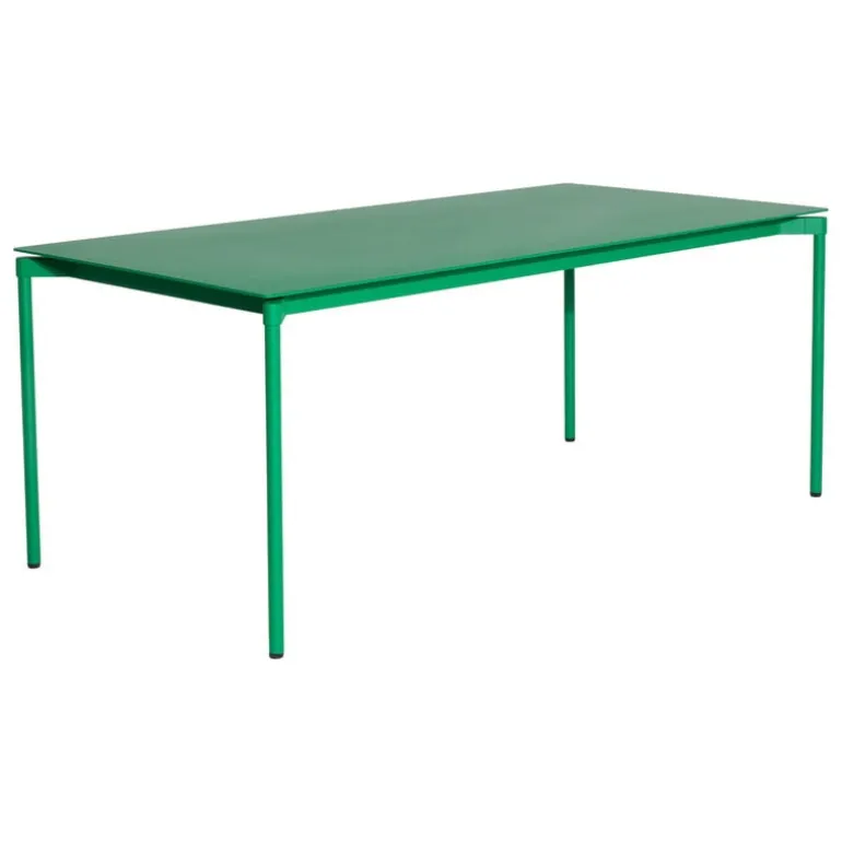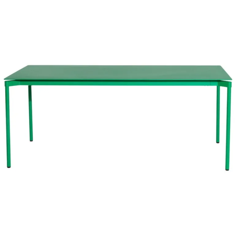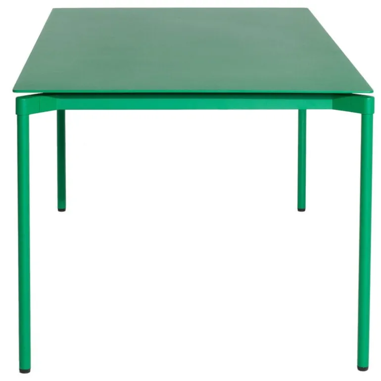 Petite Fritures Fromme-bord har enkla, strömlinjeformade former och en tunn, rektangulär bordsskiva med integrerade stötdämpare som ger den en något flexibel känsla. Fromme-bordet, som är tillverkat av mattlackerad aluminium, är designat för både utomhus- och inomhusbruk – det är lika idealiskt som ett utebord i trädgården som ett matbord inomhus.