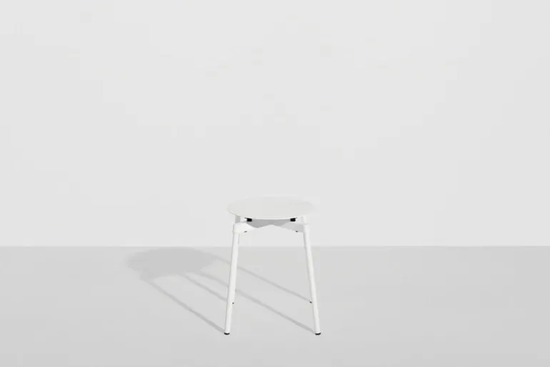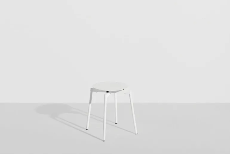 Stolen Fromme från Petite Friture har enkla, strömlinjeformade former och en lätt välvd sits med inbyggda stötdämpare för att ge en maximalt mjuk och följsam upplevelse. Pallen är tillverkad av mattlackerat aluminium och är avsedd att användas både ute och inne – Fromme passar alltså lika bra som utomhuspall i trädgården som en extra sittplats inomhus.