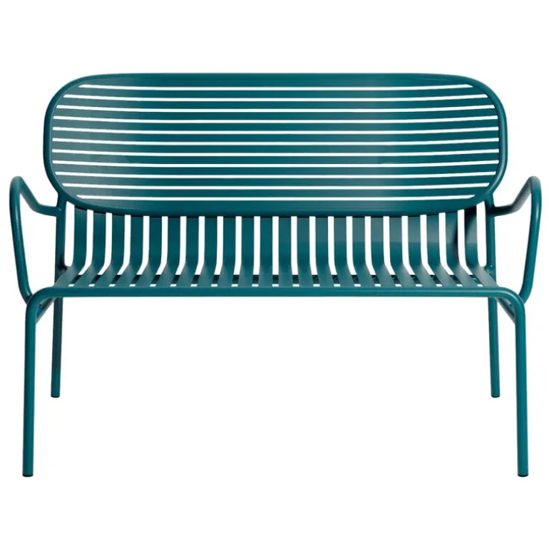 Week-end dubbelsoffa är en del av Petite Fritures kollektion med utemöbler i aluminium. Den mysiga tvåsitsiga soffan kännetecknas av ovala former och både horisontella och vertikala lameller på ryggstödet. Du kan göra din Week-end soffa ännu bekvämare med sittkuddar, som säljs separat.