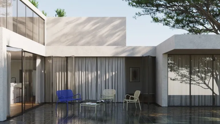 Designduon bakom Petite Fritures utemöbler Week-end heter BrichetZiegler, ochi kollektionen kombinerar de olika geometriska former med samtida, funktionell design. Aluminiumkonstruktionen gör möblerna lätta och slitstarka på samma gång, och den matta, epoxibehandlade ytan klarar av alla väderförhållanden. Kollektionen Week-end består av stolar, bänkar och bord i många färger och storlekar, och utomhusmöblerna lämpar sig därför lika bra i stora trädgårdar som på små balkonger. Tack vare den eleganta designen kan serien även användas inomhus.