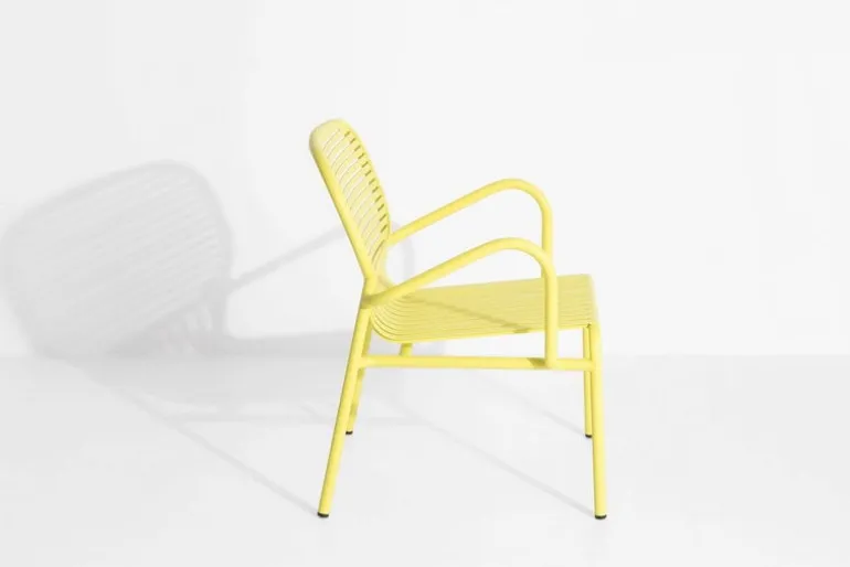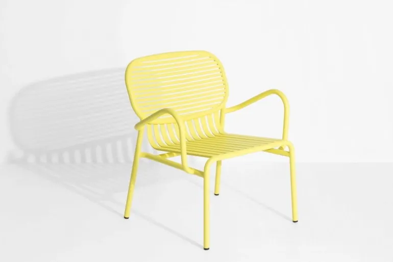 Week-end är en fåtölj som ingår i Petite Fritures kollektion med utemöbler i aluminium. Week-end fåtölj kännetecknas av ovala former med både horisontella och vertikala lameller på ryggstödet. Alla stolarna i serien Week-end är stapelbara.