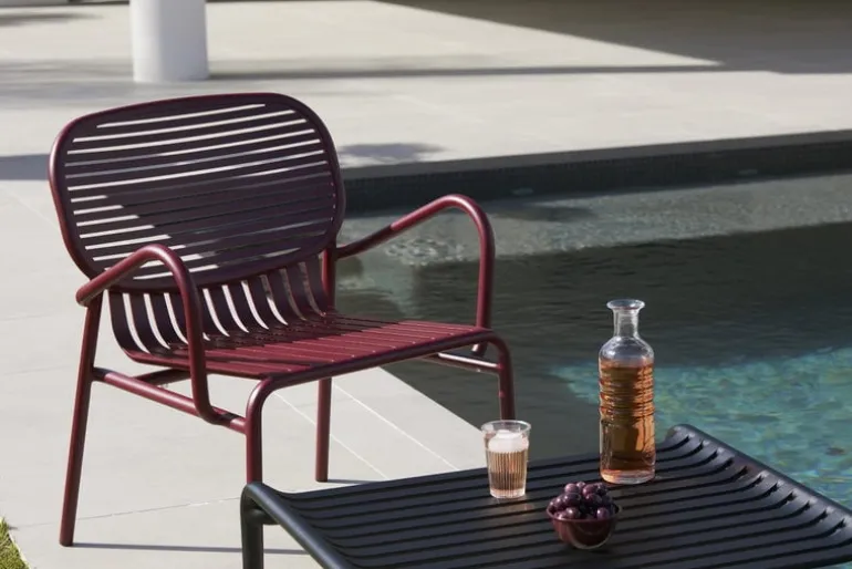 Week-end är ett soffbord som ingår i Petite Fritures kollektion med utemöbler i aluminium. Det här stilrena soffbordet för utomhusbruk är vackert tillsammans med fåtöljerna från Week-end kollektionen.
