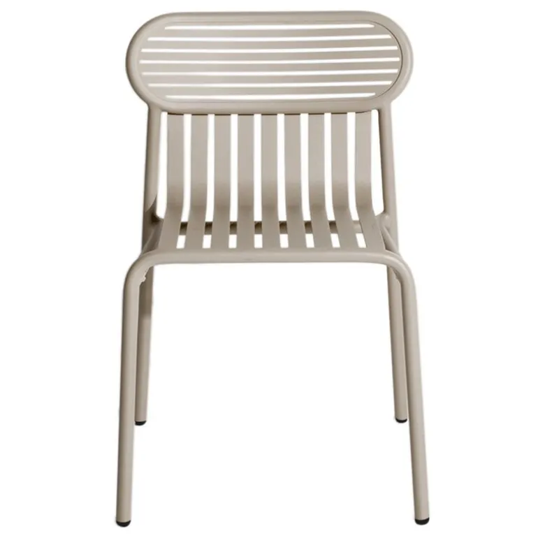 Week-end är en stol som ingår i Petite Fritures kollektion med utemöbler i aluminium. Week-end stolen kännetecknas av ovala former med både horisontella och vertikala lameller på ryggstödet. Alla stolarna i serien Week-end är stapelbara.