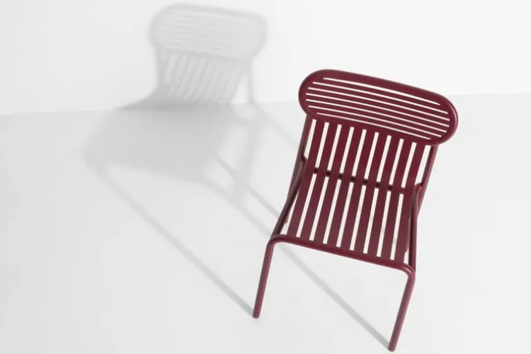 Week-end är en stol som ingår i Petite Fritures kollektion med utemöbler i aluminium. Week-end stolen kännetecknas av ovala former med både horisontella och vertikala lameller på ryggstödet. Alla stolarna i serien Week-end är stapelbara.