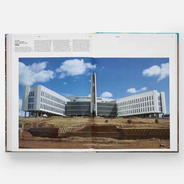 Från ambassader och kontorsbyggnader till nöjeslokaler och transportknutpunkter, glamorösa design av ikoner som Arne Jacobsen, Mies, Le Corbusier, Eero Saarinen, Alvar Aalto, Marcel Breuer, Frank Lloyd-Wright och Oscar Niemeyer illustreras var och en med fantastiska fotografier.